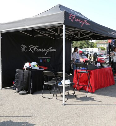 Cat Moto Motocross Team with two Ecotent pop-up gazebos at a European race paddock.