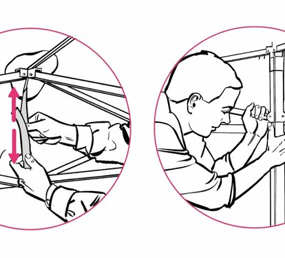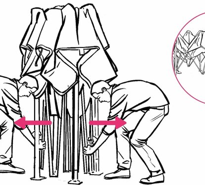 2 minutes, one or two people and a few simple steps, that's all you need. Our folding tents are quick and easy to assemble. The process is very intuitive, but if it is your first time be sure to proceed as efficiently as possible by following these instructions. Step by step, we show you how to assemble your Ecotent® folding tent in just 2 minutes, with clear pictures and videos. The best thing? The entire assembly and disassembly process is done without tools!